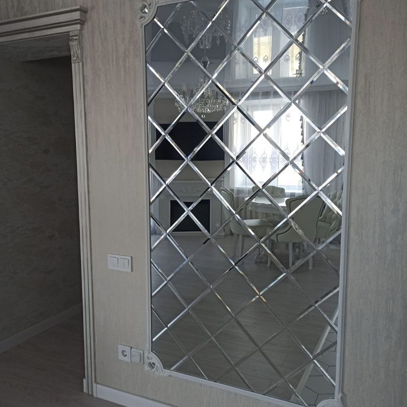 Использована серебряная квадратная зеркальная плитка 18х18.