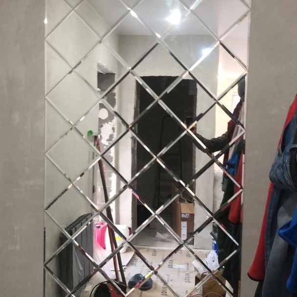 Использована серебристая зеркальная плитка "вытянутый ромб".