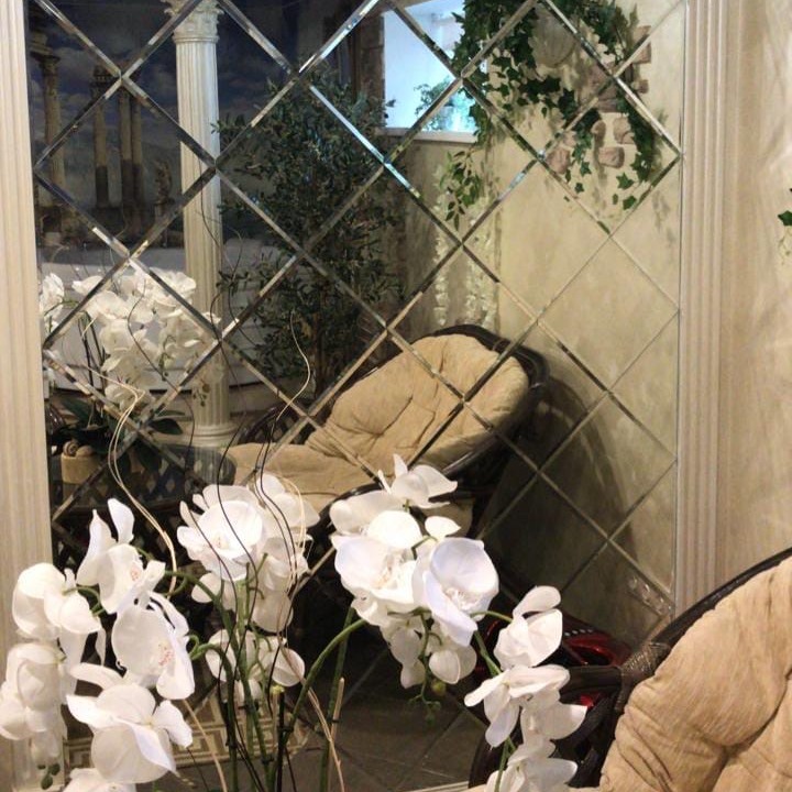 Использована зеркальная плитка "вытянутый ромб" с фацетом.